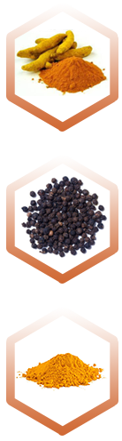 Our team of scientists developed a unique blend of standardized to 95% Turmeric Curcumin (Root) Extract and Standardized to 95% Piperine in order to achieve maximal efficiency and fully unlock the potential of these all-natural ingredients, which complement each other, creating a wide range of health benefits. Turmcumin 300X works based on the following steps: